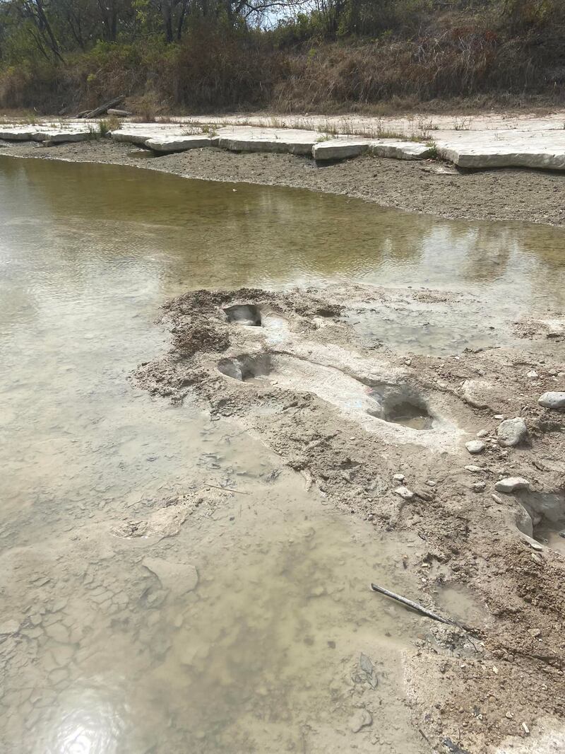 Texas drought reveals dinosaur footprints from 113 million years ago Dinosaur tracks are visible because drought has caused the river to drop lower than normal. (Paul Baker/LDL Friends of Dinosaur Valley)