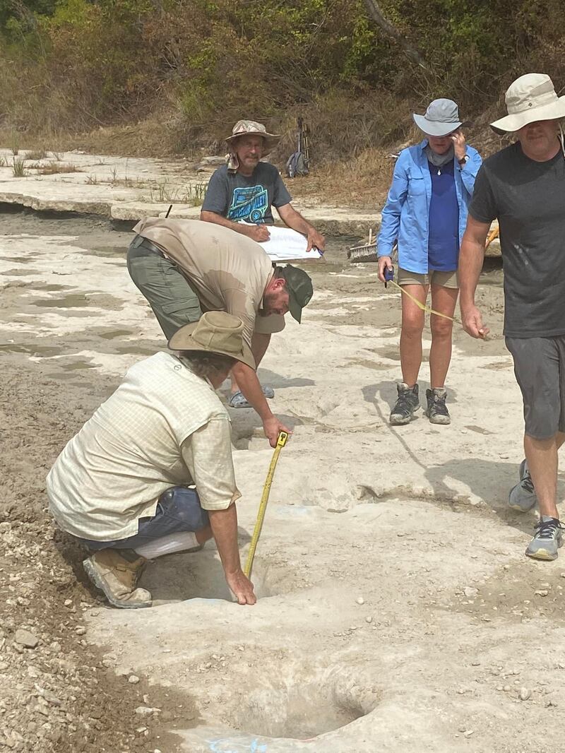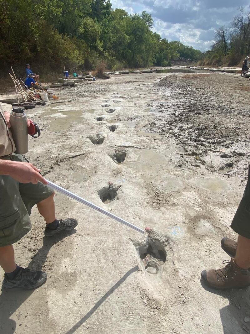Texas drought reveals dinosaur footprints from 113 million years ago Park officials said the prints were left by Acrocanthosaurus and Sauroposeidon dinosaurs. (Paul Baker/LDL Friends of Dinosaur Valley)