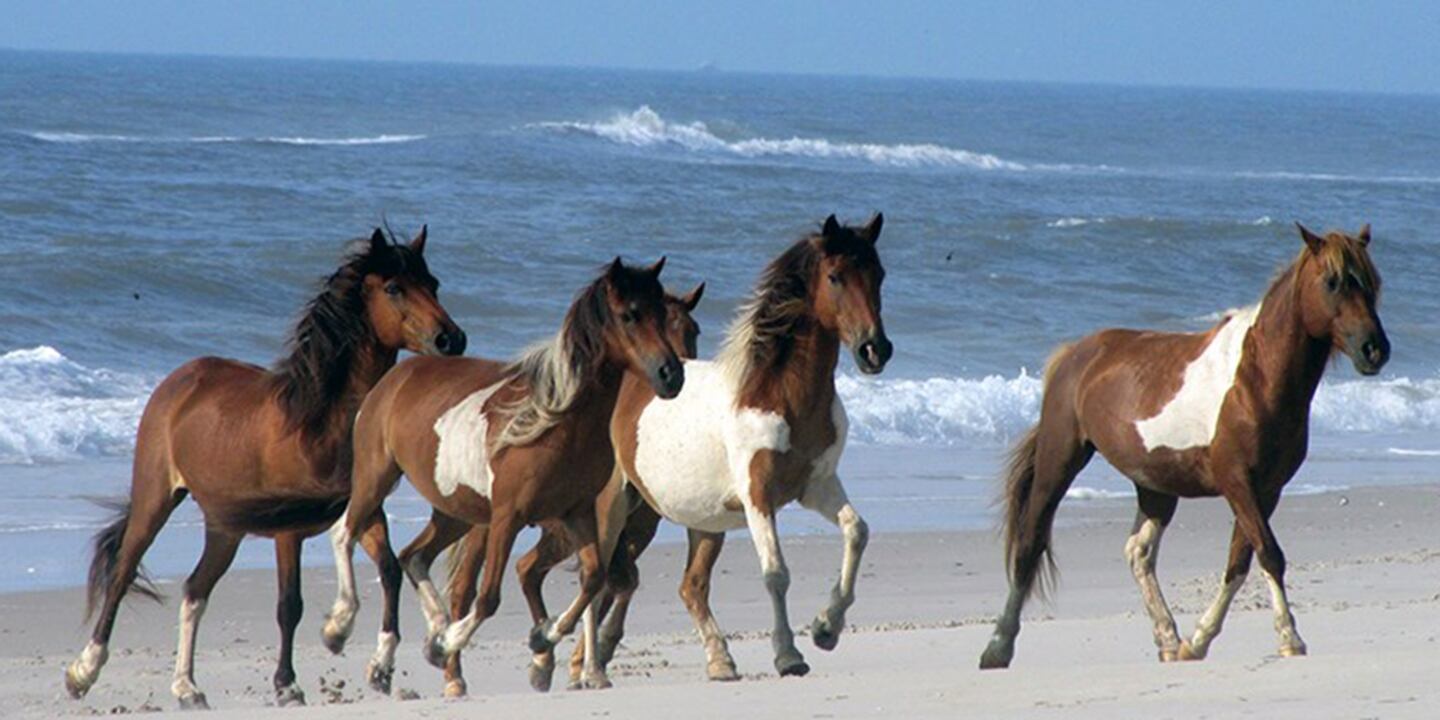 Over 200 feral horses, sometimes referred to as Assateague horses or Chincoteague ponies, live on the narrow, 37-mile long Assateague Island located off the eastern coast of Maryland and northern Virginia. The island is owned by the federal government.