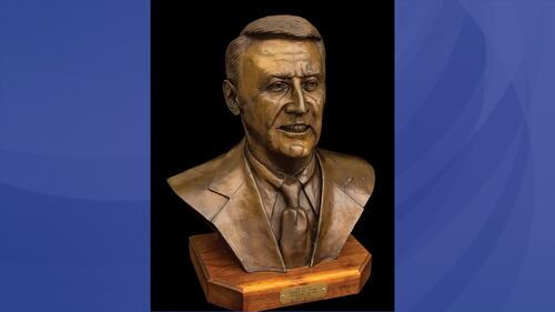 Vin Scully collection Vin Scully has a copy of the bust that resides at the National Baseball Hall of Fame in Cooperstown, New York. (Hunt Auctions )