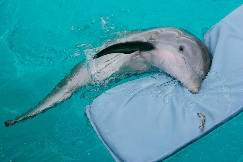 Winter the dolphin FILE - In this July 26, 2007 file photo, Winter, a tailless dolphin, rests on her mat at the Clearwater Marine Aquarium in Clearwater, Fla. The Clearwater Marine Aquarium was heavily featured in the 2011 film Dolphin Tale, which told a fictionalized account of Winter the dolphin. The film reached audiences world wide and brought thousands of visitors to the aquarium. The aquariums story is one that Film Florida, a lobbying group for the states entertainment industry, pushed recently when a delegation of filmmakers and others met with lawmakers in Tallahassee about extending the states incentive program for luring movie and TV production. (AP Photo/Chris O'Meara, File) (Chris O'Meara/AP)