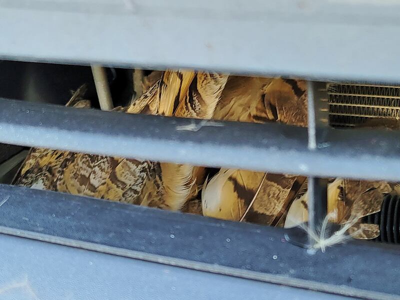 CPW officer Travis Sauder evaluated the bird, and determined the animal’s wing was injured but likely not broken. Sauder said he believes the owl was likely diving for prey when it was sucked under the grille of a pickup truck on Monday night.
