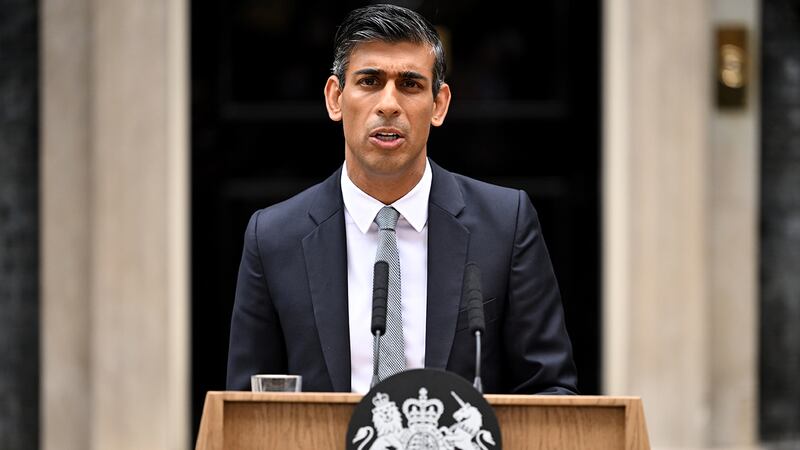 Photos: Rishi Sunak becomes British PM after meeting with King Charles III British Prime Minister Rishi Sunak makes a statement after taking office outside No. 10 Downing St. on October 25, 2022, in London. (Leon Neal/Getty Images)