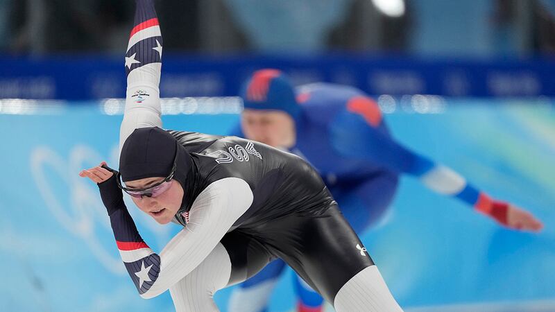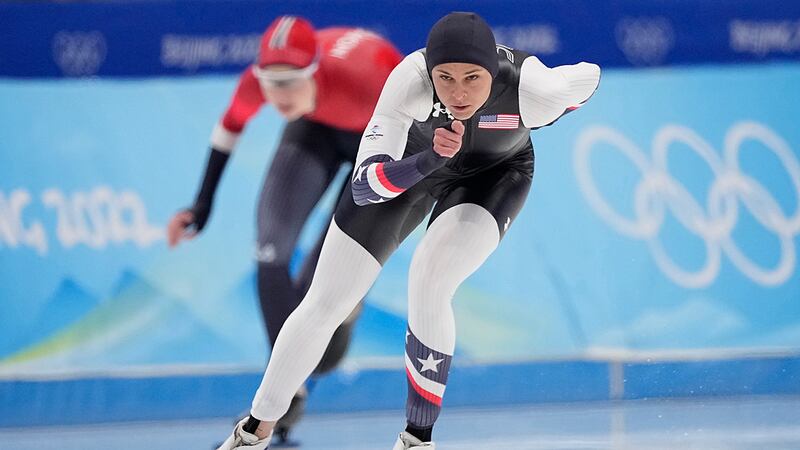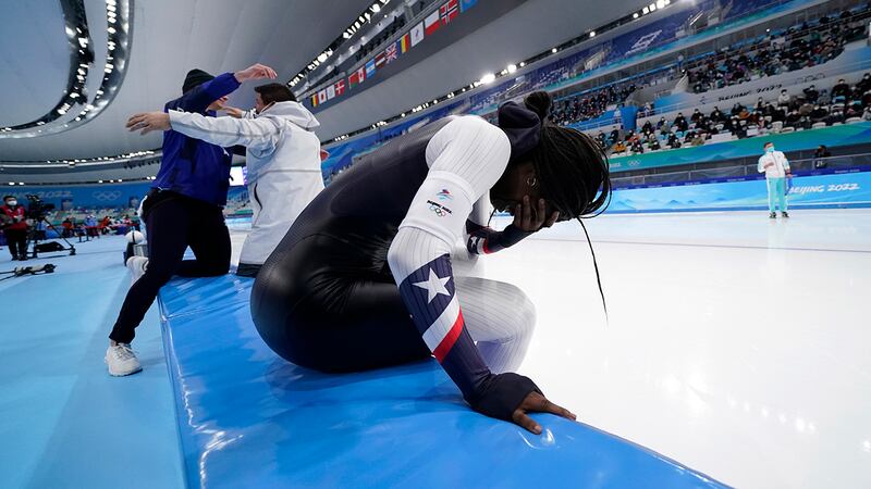 US speedskater Erin Jackson wins Olympic gold in 500m Kimi Goetz of the United States reacts after her heat in the speedskating women's 500-meter race at the 2022 Winter Olympics, Sunday, Feb. 13, 2022, in Beijing. (Ashley Landis/AP Photo)