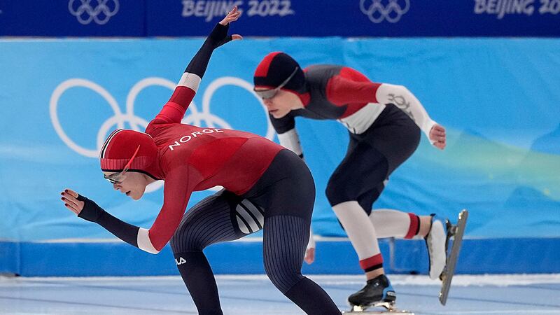 US speedskater Erin Jackson wins Olympic gold in 500m Martine Ripsrud of Norway competes against Nikola Zdrahalova of the Czech Republic, behind, in the speedskating women's 500-meter race at the 2022 Winter Olympics, Sunday, Feb. 13, 2022, in Beijing. (Sue Ogrocki/AP Photo)