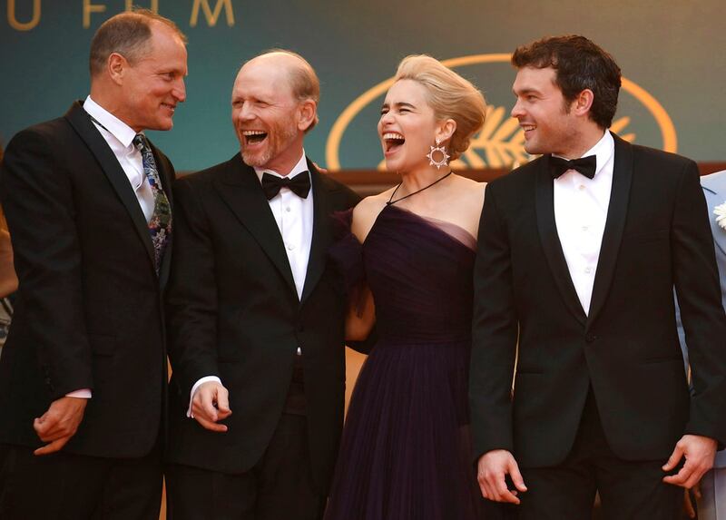 Woody Harrelson Actor Woody Harrelson, from left, director Ron Howard, actress Emilia Clarke and actor Alden Ehrenreich pose for photographers upon arrival at the premiere of the film 'Solo: A Star Wars Story' at the 71st international film festival, Cannes, southern France, Tuesday, May 15, 2018. (Photo by Arthur Mola/Invision/AP) (Arthur Mola/Arthur Mola/Invision/AP)