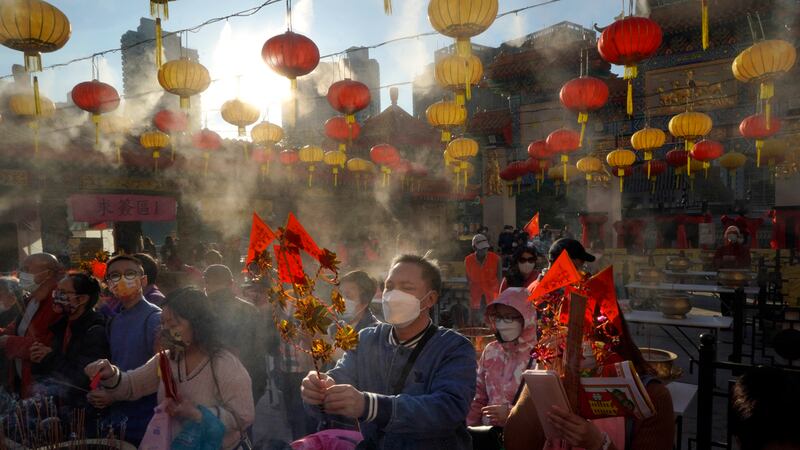 Lunar New Year celebrated around the world Worshippers wearing face masks to protect against the spread of the coronavirus, burn joss sticks as they pray at the Wong Tai Sin Temple, in Hong Kong, Friday, Feb. 12, 2021, to celebrate the Lunar New Year which marks the Year of the Ox in the Chinese zodiac. (AP Photo/Kin Cheung)
