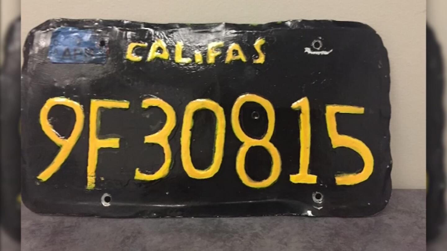 A tractor-trailer sporting a homemade license plate was pulled over last month in Moorpark, California.