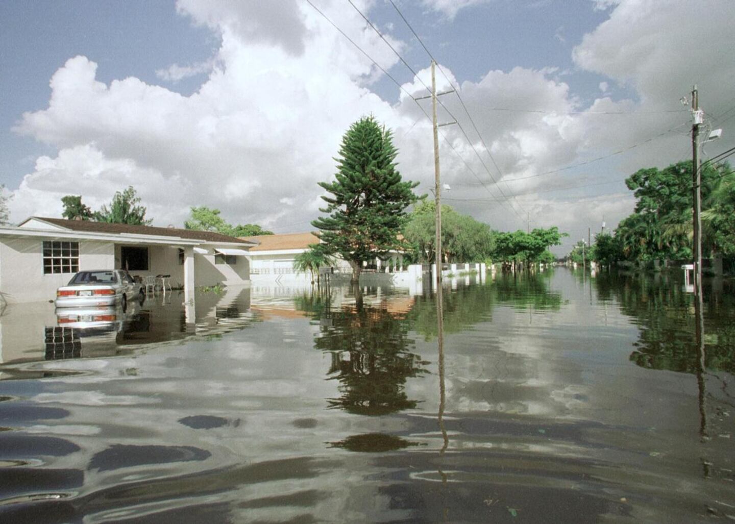 Two hurricanes hit South Florida two weeks apart in September 1948 and October 1948, causing extensive flood damage. The first of the two was the most destructive, with wind gusts of 160 miles per hour and a 6-foot storm surge.