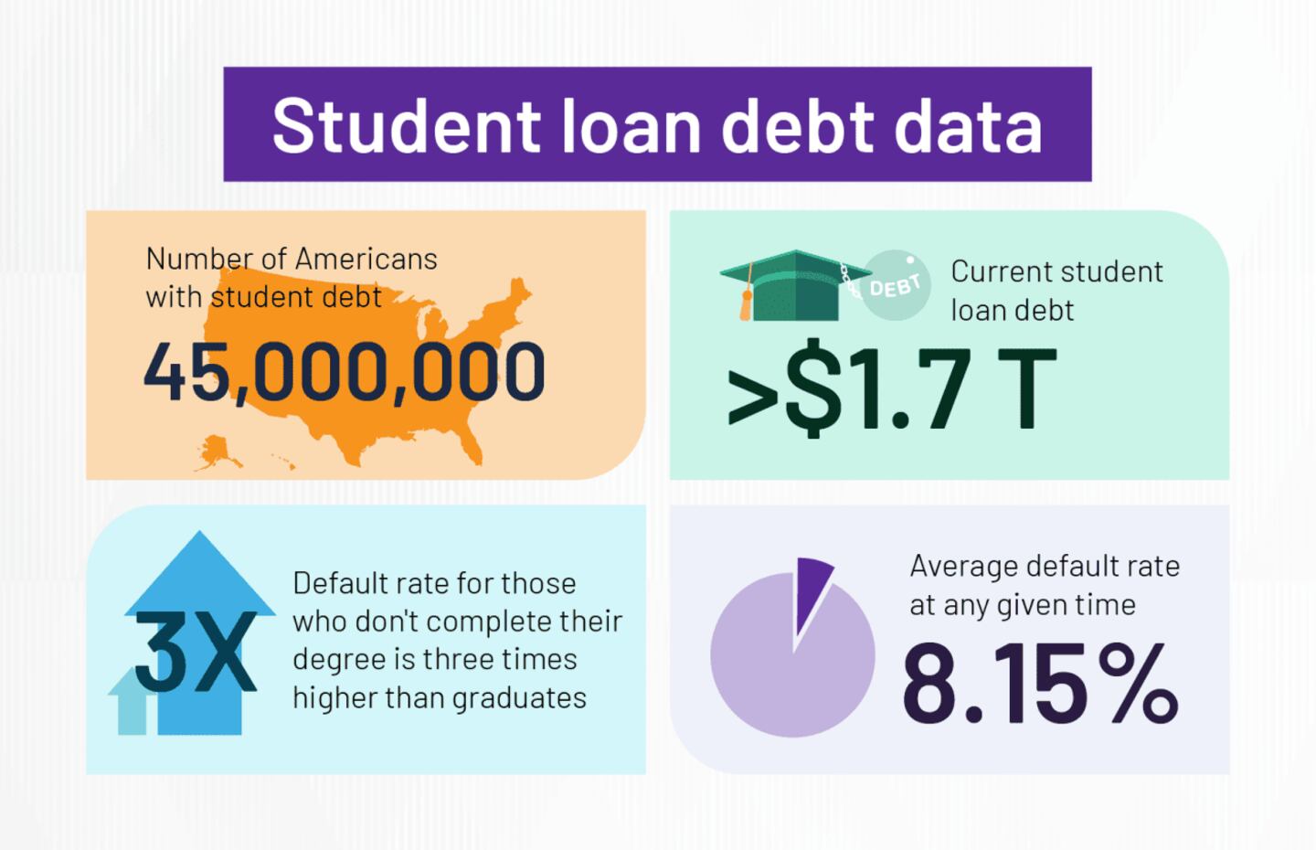 Interestingly, higher debt from graduate or professional degrees can pay off more consistently with higher incomes. In contrast, students who fail to complete their degrees struggle the most to make good with the bank, and their default rate is three times higher than that of graduates. An average of 8.15% of student loan debt is in default at any given time. This number will likely increase as students extend their credit to cover the cost of their qualifications.