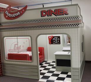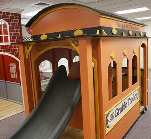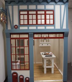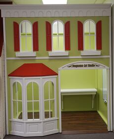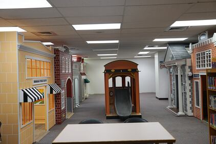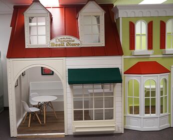 Storefronts Duquesne City School District, with grant money, partnered with Lilliput Play Homes to build storefronts in the Carnegie Library branch located in the school. (Duquesne City School District)