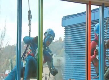 PHOTOS: 'Superhero' window washers return to UPMC Children's Hospital