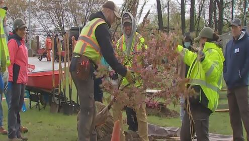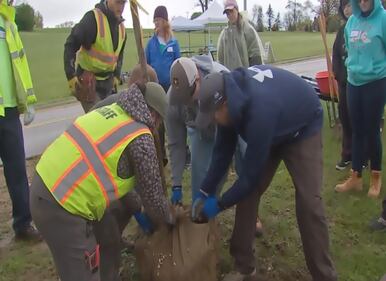 Tree planting Woodland Hills High School students, volunteers from U.S. Steel, the Pittsburgh Penguins Foundation, Tree Pittsburgh, the Arbor Day Foundation and representatives from the Davey Resource Group planted 34 trees around the high school Wednesday.