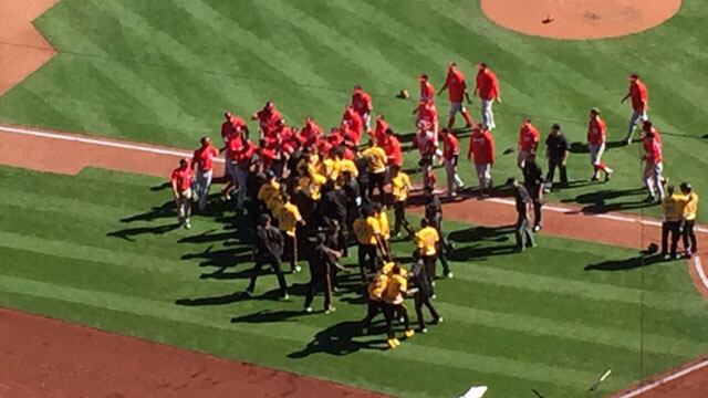 That’s when tensions reached a breaking point and the benches cleared. The Pirates’ Sean Rodriguez was ejected.