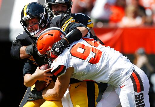 The Steelers scored their first TD on a blocked punt and sacked Kizer seven times. Two of the sacks were by rookie T.J. Watt, the younger brother of Houston star J.J. Watt, who also had an interception in a memorable debut.