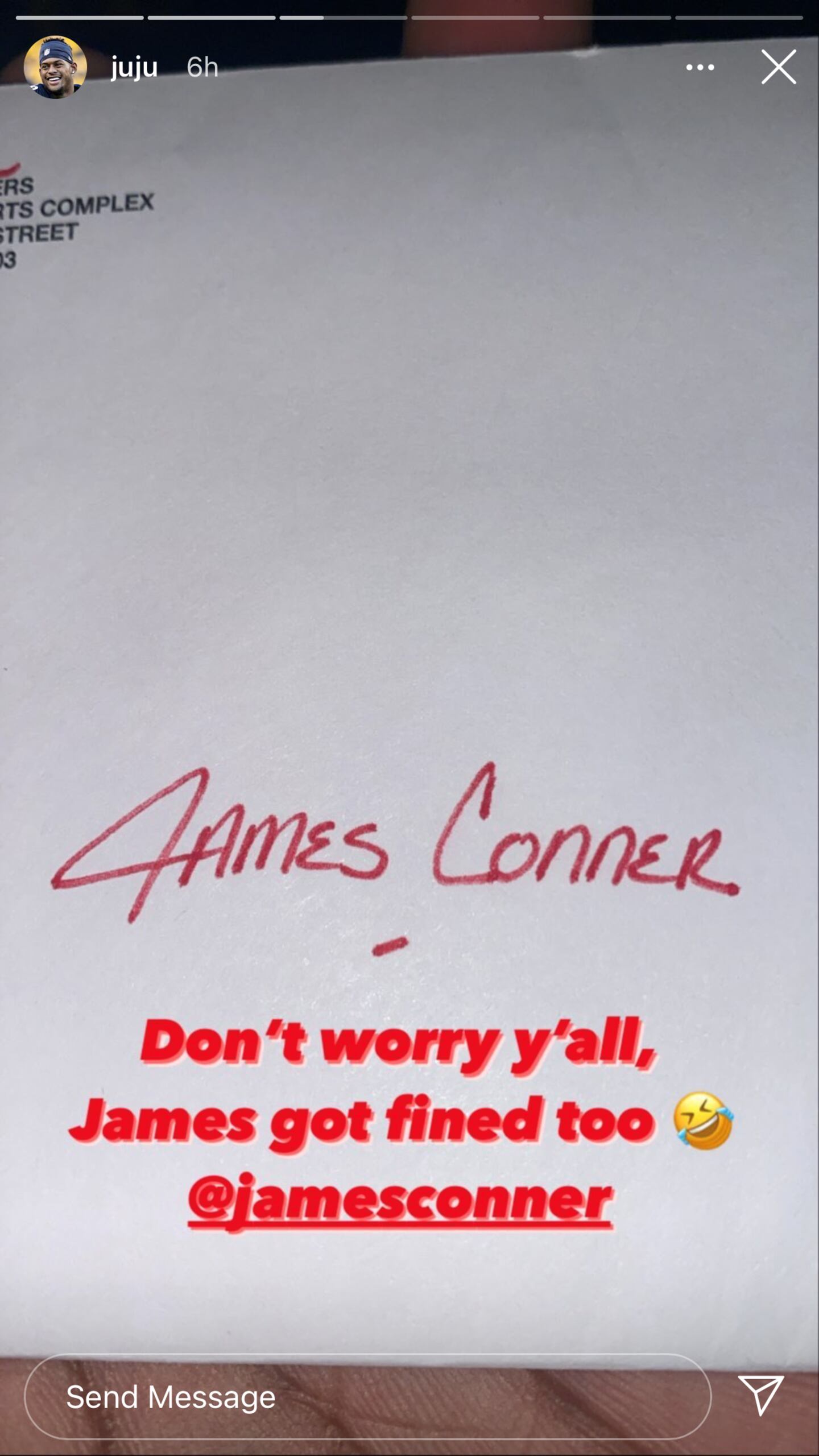 He followed up with a picture of the letter Conner received for the same violation, saying “Don’t worry y’all, James got fined too” with a laughing emoji.