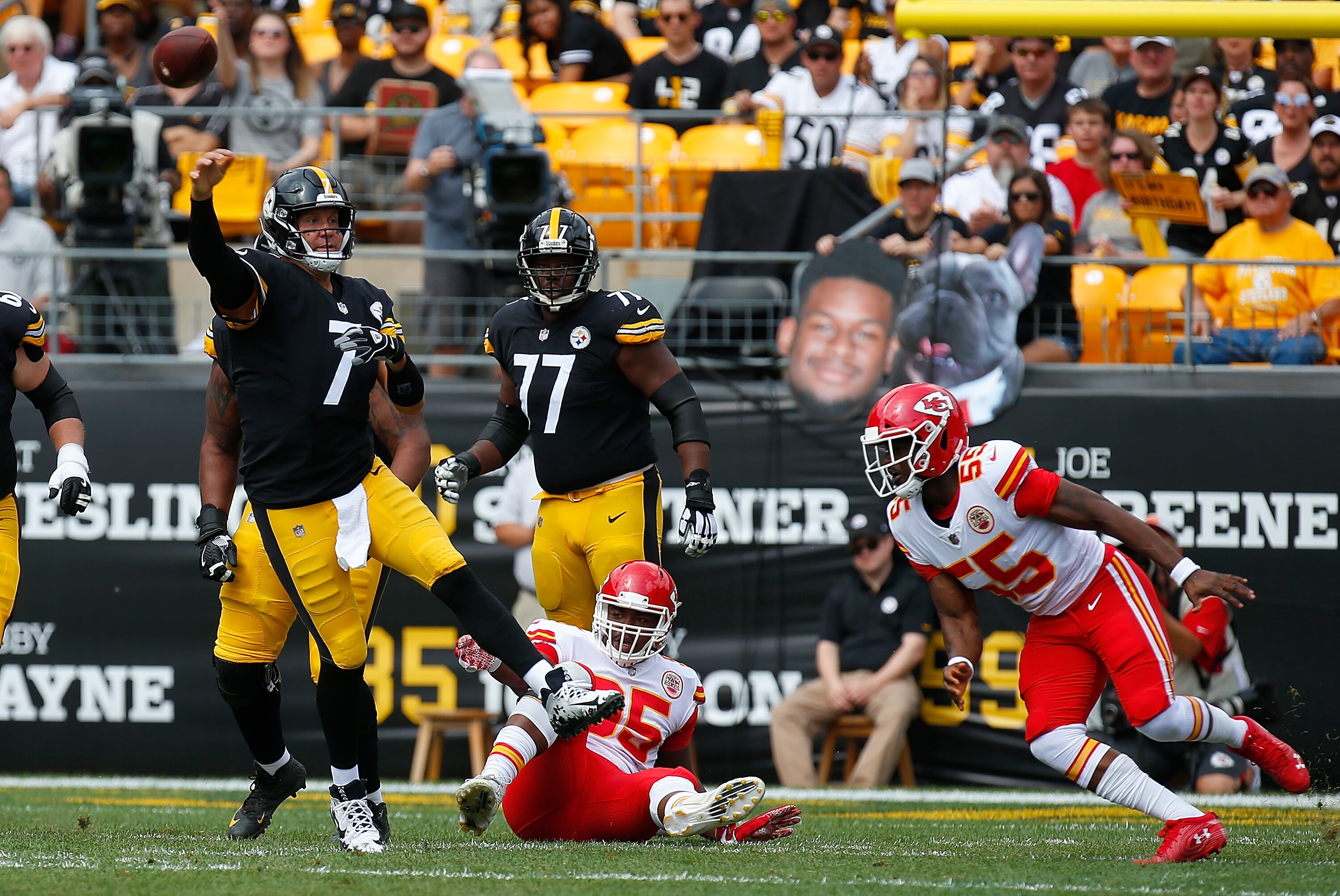 Rather than attempt an onside kick, Pittsburgh sent it deep. Two runs by Hunt gave Kansas City a big first down and Steelers linebacker Tyler Matakevich was flagged for roughing the punter, allowing the Chiefs to run out the clock and put the two-time defending AFC North champions in an early season hole.
