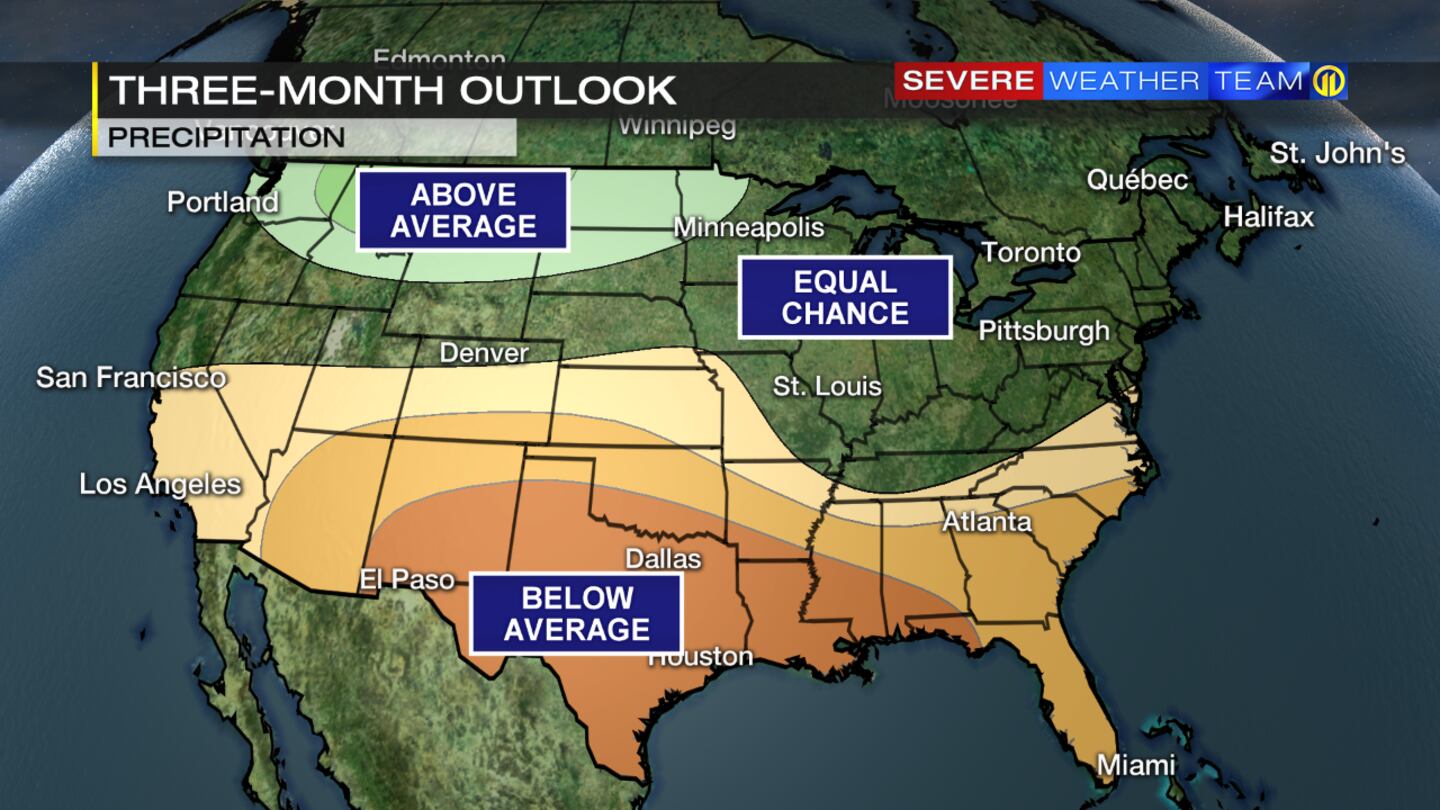 PITTSBURGH — The Climate Prediction Center recently released their outlook for temperature and precipitation for the months of November, December and January. For our area, it favors above-average temperatures during the period, and an equal chance of seeing below or above average precipitation, which includes snow melt. Their reasoning behind the forecast is the La Niña climate pattern, which is expected to continue into the winter months, too.